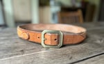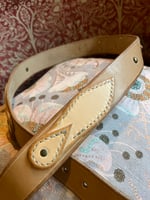 The main structure of the belt being made from 4/5mm Devonshire Oak~Bark tanned leather , combined with Veg~tanned Comet/flame details , all stitched in place by hand with waxed linen thread .